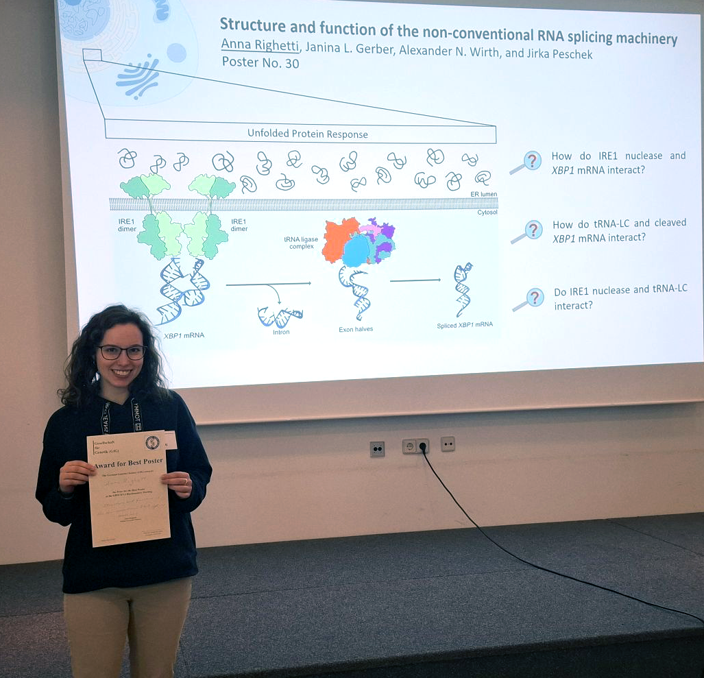 Die GfG beglückwünscht Anna Righetti, die für ihr herausragendes Poster „Structure and function of the non-conventional RNA splicing machinery“ den GfG Posterpreis beim GBM RNA Biochemie Symposium gewonnen hat.